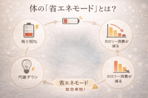 - ホメオスタシス(恒常性)の発動 カロリー不足が続くと、体は「これ以上脂肪を減らすと命に関わる」と判断し、脂肪分解をストップさせます。