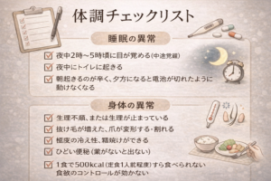 もし、あなたに以下のような症状が出ていたら、それは体からの「もう限界です」という悲鳴です。 これらは、代謝機能が著しく低下している「末期症状」です。